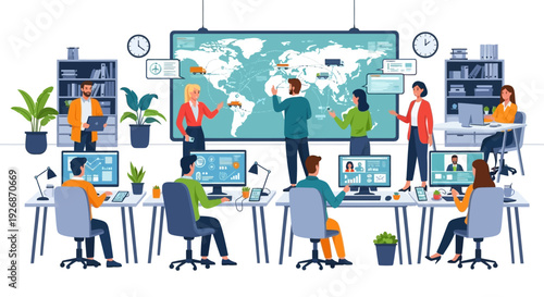 Restaurant chef cook and waiter in uniform, kitchen appliances and utensils, vector flat illustration. Commercial restaurant kitchen with male and female characters cooking food, holding silver dish.