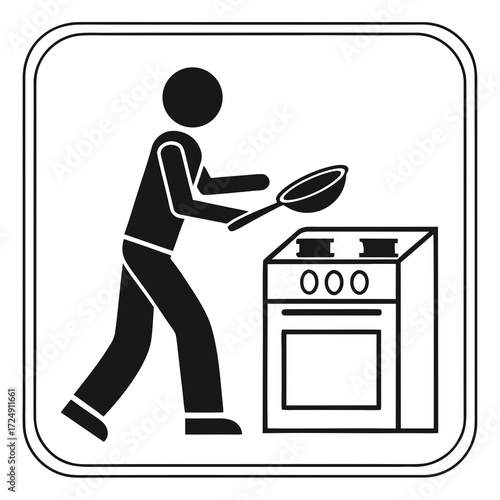 Man chef cook with kitchen scapula preparing tasty food while standing next to cooker, vector flat illustration isolated on white background. Restaurant worker in uniform cooking.