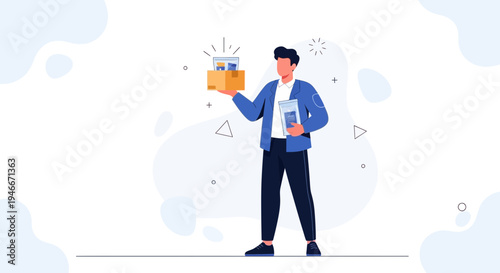 Rich gentleman banker with tray full of cash money, flat vector illustration. A man of fortune. Happy and wealthy person, successful businessman, dollar millionaire, banking tycoon.