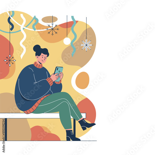 Rich girl sitting on dollar bills, cash money stack, flat vector illustration. Wealthy business woman, happy lady millionaire. Financial success, wealth.