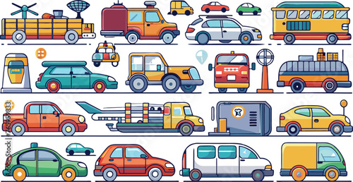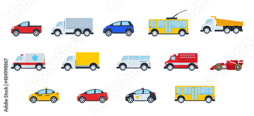 Road traffic accident set, vector flat isolated illustration. Car collision with bike, motorbike, pedestrian, another car. Auto accident, motor vehicle crash, injured cyclist, motorcyclist characters.