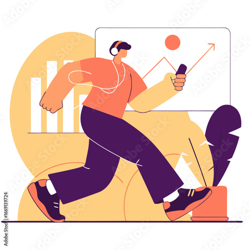 Robot and human running marathon race, flat vector illustration. Robotic machine winning competition. Artificial intelligence vs human.