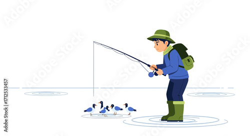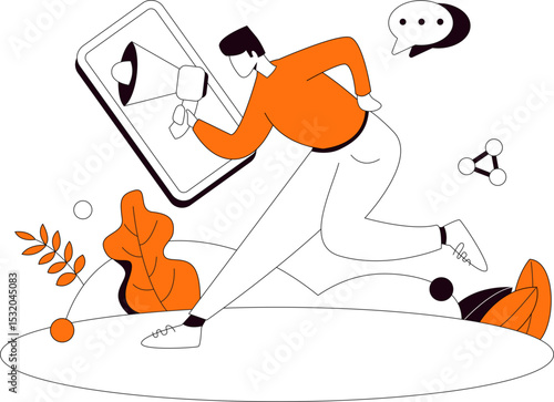 Robot assistant helping man to mow lawn vector illustration. Robotic housekeeping. Futuristic technology and housework process automation concept