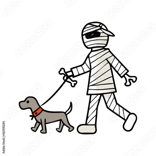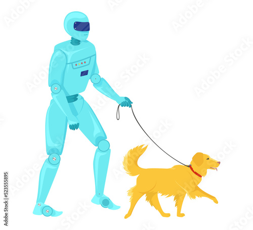 Robot assistant walking dog vector flat icon isolated on white background. AI robotic machine working daily routine chores illustration. Artificial intelligence futuristic technology concept