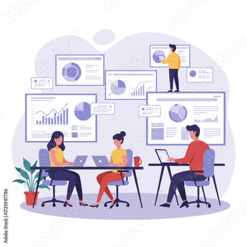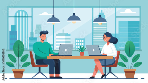Robot machine working a lot faster than businessman, flat vector illustration. Robots superiority. Automation. Artificial intelligence vs human intelligence.