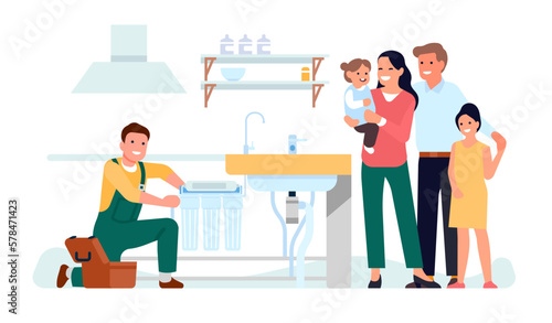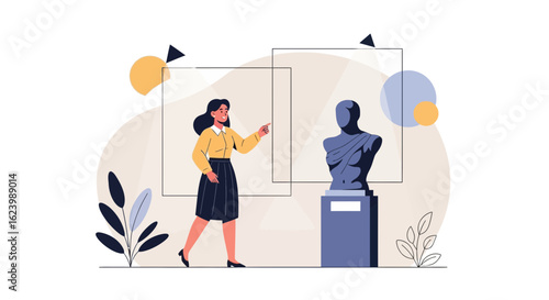 Robot getting first place and celebrating victory standing on winner pedestal with trophy cup, flat vector illustration. Robot machine winning competition. Artificial Intelligence concept.