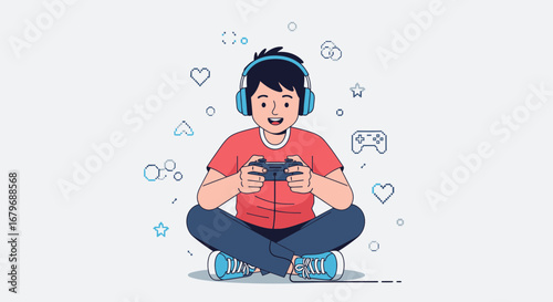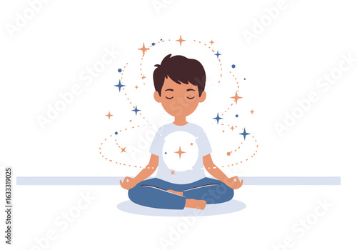 Robotics school. Cute boy, future engineer building robot, flat vector illustration. Kids robotics engineering.
