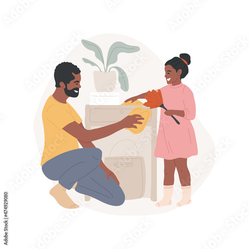 Robotics school. Cute children boy and girl building robot, playing with toy robots, flat vector illustration. Kids robotics engineering.