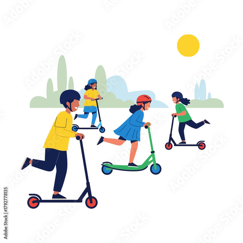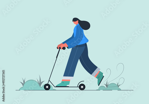 Vector isometric illustration of man walking with dog pet and domestic service robot walking with robot dog.