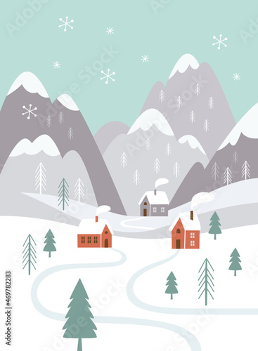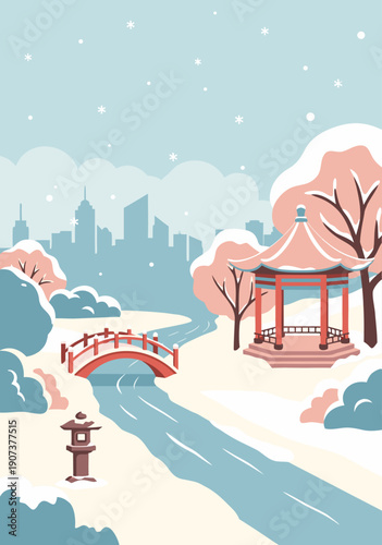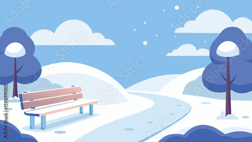 Romantic cople ice skating on a lake. Winter holiday sport activity vector concept illustration. Outdoor ice rink. Ice skating park with bench. Web site design template.