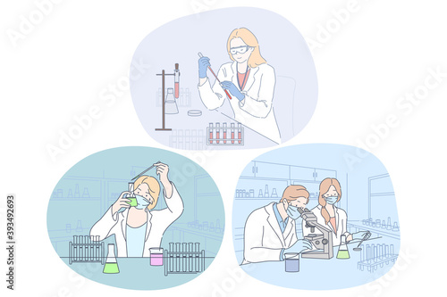 Romantic date and marriage proposal scene set, flat vector illustration. Man kneeling making marriage proposal to woman in restaurant. Happy couple having romantic dinner at home. Love and romance