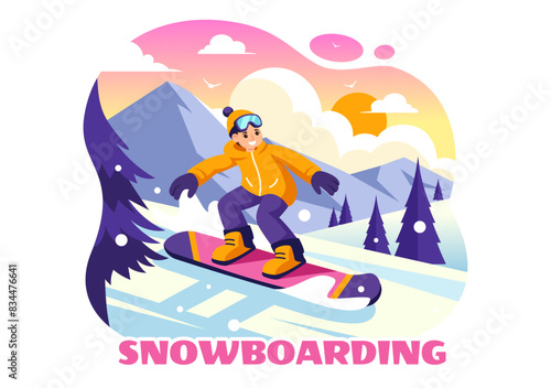 Vector illustration of young man going up on ski tow. Downhill skiing, ski resort. Rope tow concept design element in flat style.