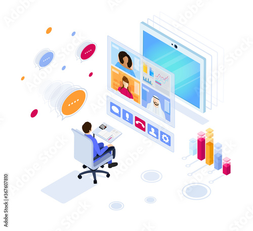 Sales and marketing, landing page design, website banner template, flat vector isometric illustration. Products sales and promotion. Digital marketing.