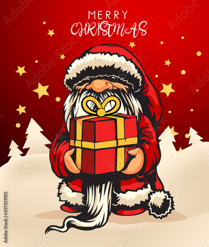 Santa claus vector illustration in comic pop art style. Merry Christmas holiday concept poster and greetings card.