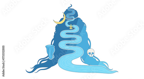 Stop ocean plastic pollution. Vector illustration in paper art style. Water drop with marine animals and plastic trash inside. Ocean environmental problem, ecology.