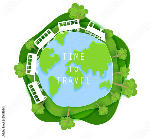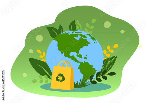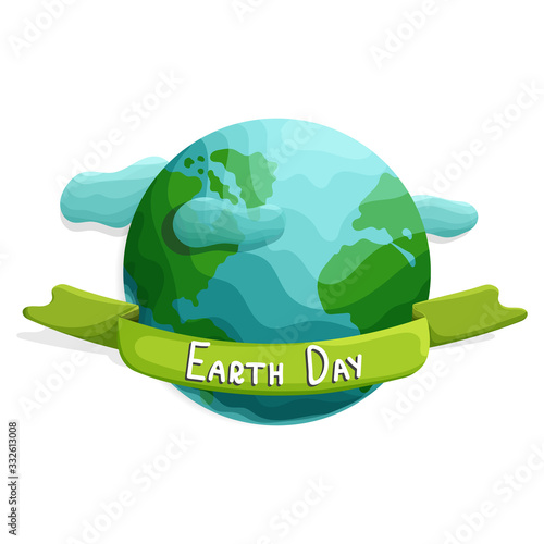 Save the planet concept poster in paper art origami style. Vector illustration paper cut design. Green earth round sign.