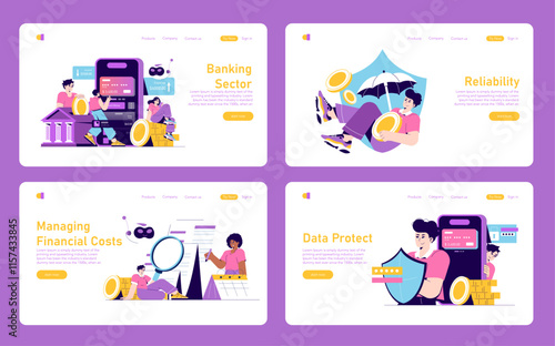 Saving money in a bank, money safe box, consious eating. Healthy food, fruits. Concept illustration. Vector web site design template. Landing page website illustration