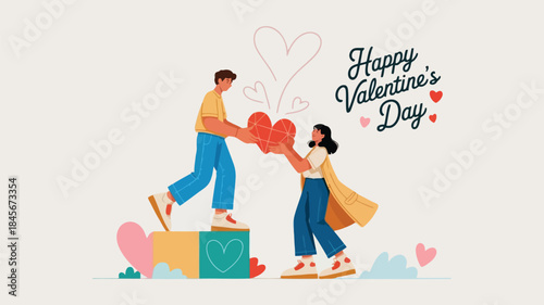 Vector illustration of young man and woman jogging in the park. Scamper concept flat style design element.