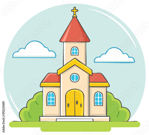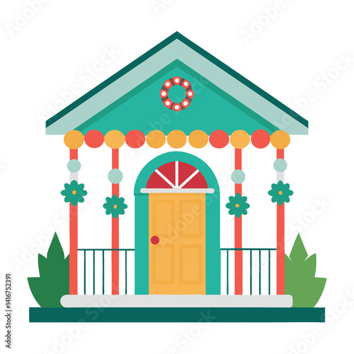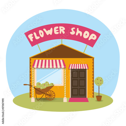 Vector illustration of wedding arch decorated with flowers. Scenery of outdoors wedding ceremony flat style design element.