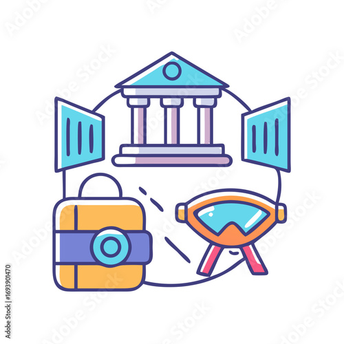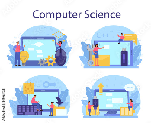School and education vector illustration set isolated on white background. School building, bus, pupils, backpack, graduation hat, stationery and other school supplies.