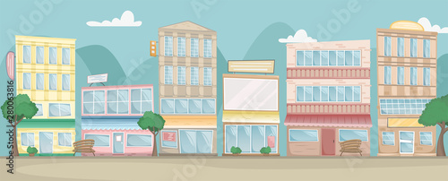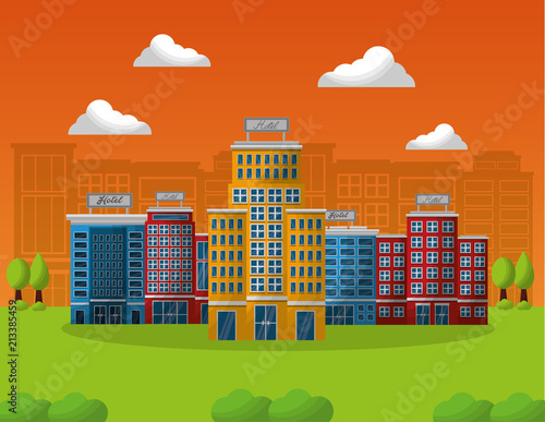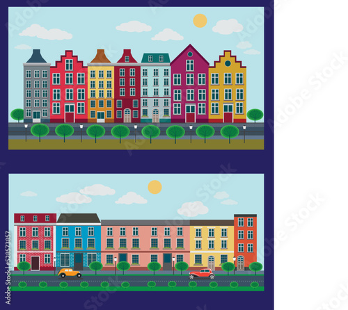 Vector set of posters with classroom and hallway interior with furniture, lockers and school supplies, sports ground with football goals. School concept flat style design elements.