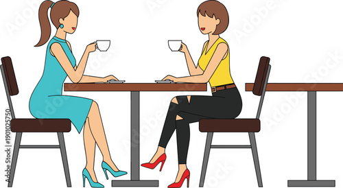 Vector illustration of students having lunch break. School people concept flat style design element, icon isolated on white background.