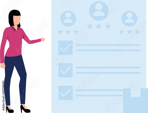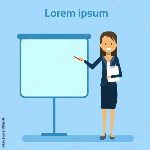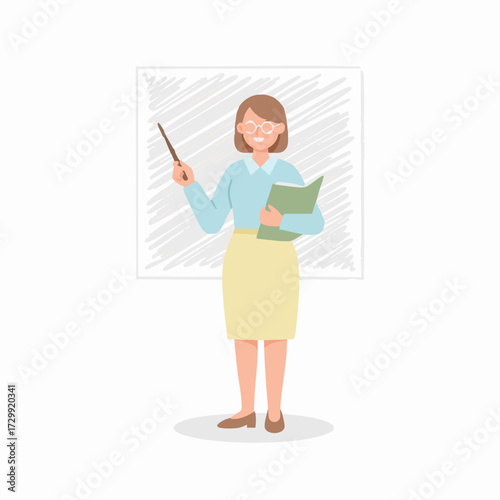 Vector illustration of teacher female with pointer. School people concept flat style design element, icon isolated on white background.