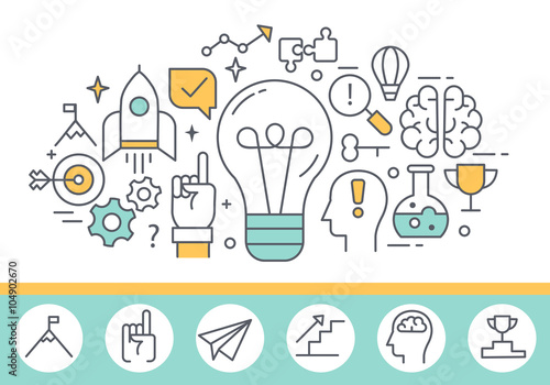 Science concept vector illustration. Modern thin line art flat style design element in the shape of human brain with scientific symbols, icons for website banners and printed materials.
