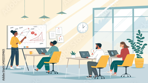 Science lab experiences, flat vector illustration. Students male, female characters learning to use scientific equipment, make observations, carry out experiments. Chemistry, biology science education
