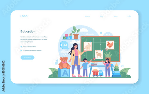 Science laboratory and researcher team vector landing page. Doctor, expert and scientist working at chemical or clinical lab illustration. Website banner design template