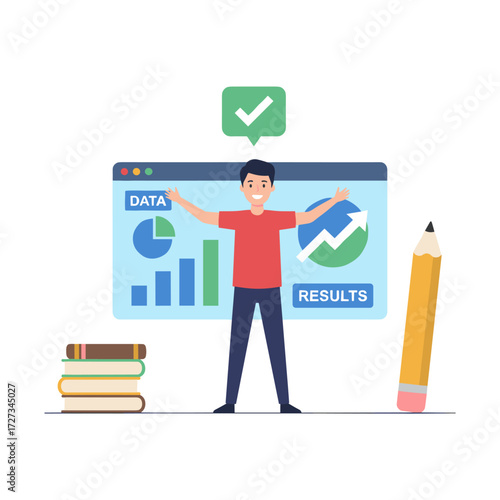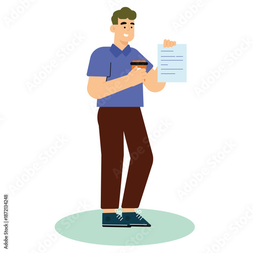 Vector illustration of biologist or chemist male in protective mask and glasses holding test tube. Science people concept flat style design element, icon isolated on white background.