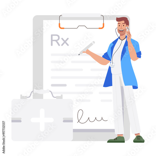 Vector illustration of chemist male holding test tube rack. Science people concept flat style design element, icon isolated on white background.
