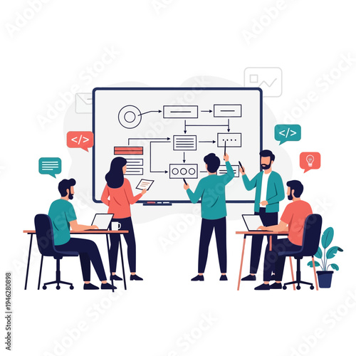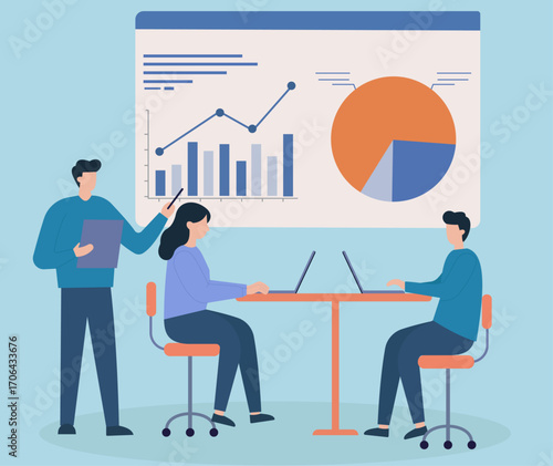 Vector illustration of chemistry teacher, university professor giving lecture. Science people concept flat style design element, icon isolated on white background.