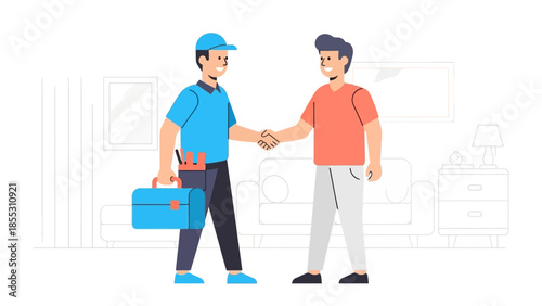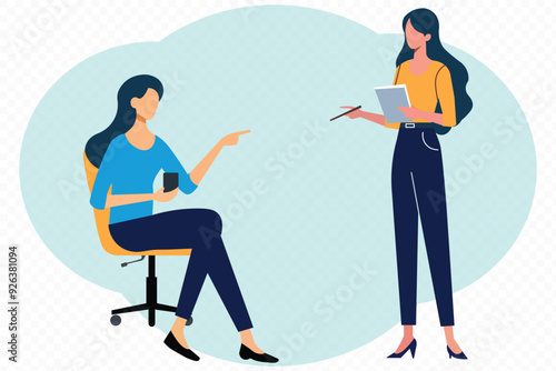 Man in lab coat giving chemistry flask to woman, vector flat illustration isolated on white background. Scientific research, science experiment concept for website page etc.