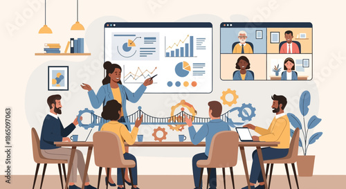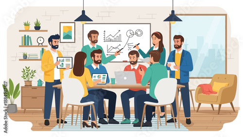 Science research lab. Scientists, male and female characters studying genetics, discussing scientific discoveries, flat vector illustration. Biotechnology, genetic engineering, medicine and technology