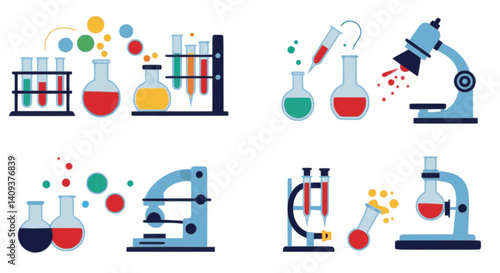 Science vector 3d icon. Chemistry laboratory research set. Dna molecule, atom, microscope and medical test equipment isometric symbol. Biology, biotechnology and chemical analysis concept