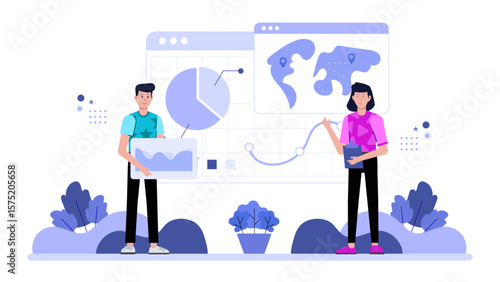Genetics science, gene engineering, pharmaceutical biotechnology, vector flat illustration. Scientists working in biology, genetic laboratory. Scientific research, education, genetic dna blood test.