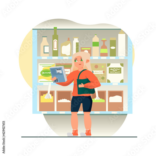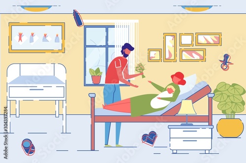 Science research laboratory scene. Scientist male carrying laboratory rack with tubes, flat vector illustration. Lab interior with furniture and glassware. Scientific research, experiment, education.