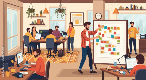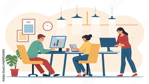 Scientists working in science laboratory, flat vector illustration. Lab workers, researchers conducting scientific experiments, studying genes, dna structure. Genetic science research lab.