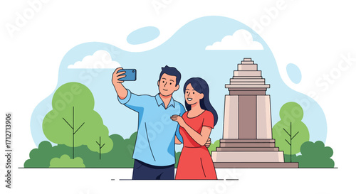 Young man sculptor carving sculpture of woman in park using chisel and hammer. Vector illustration in flat style. Craft hobby concept design element.