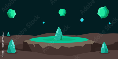 Sea voyage on sailboat vector illustration in papercut style. Creative water waves and floating yacht among tropical islands with fir tree and mountains hills background