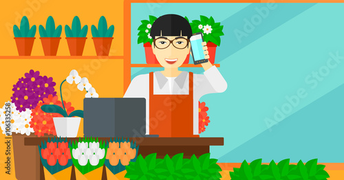 Vector illustration of secretary with a cup of coffee for executive manager in flat style. Personal assistant character, office interior.
