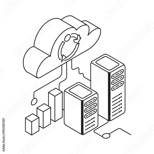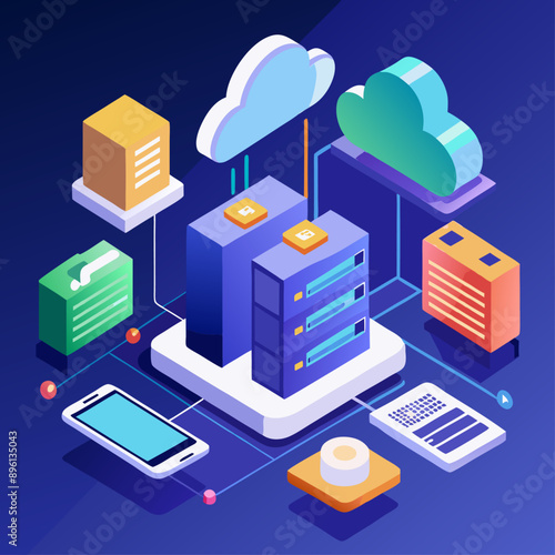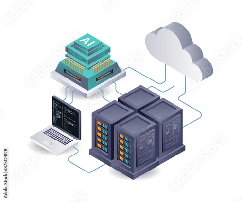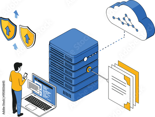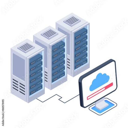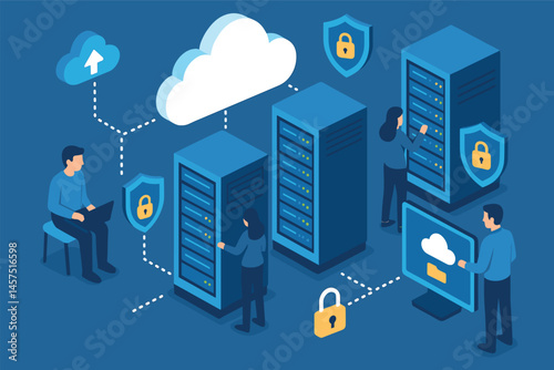 Secure cloud data storage vector. Isometric internet network service technology, information database safe access icon isolated on white background