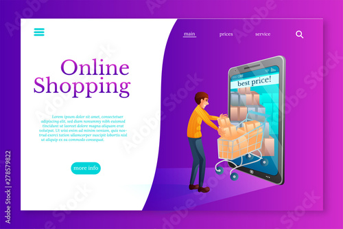 Self ordering service vector website template, landing page design for website and mobile site development. People using fast food restaurant self ordering kiosks.