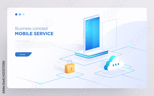 Send reports, landing page design, website banner template, flat vector isometric illustration. Data transfer.