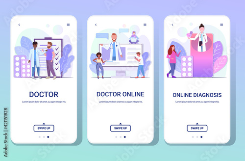 Elderly man practicing outdoor golf sport game with trainer. Mobile app screens. Vector banner template for website and mobile development. Web site and UI design illustration.