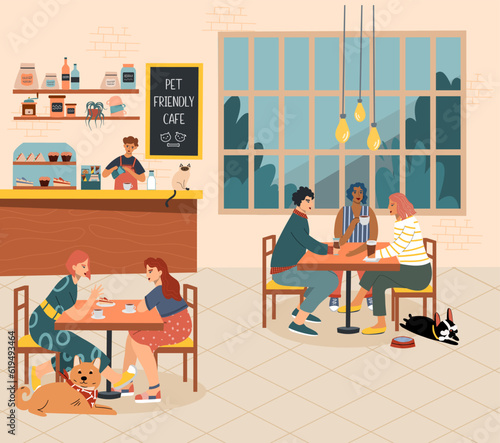 Elderly people in nursing home, assisted living community, flat vector illustration. Older adults knitting, drawing picture, walking with caregiver. Elderly care. Healthy active lifestyles for seniors