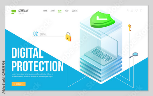 SEO analysis landing page template for website and mobile site development. Vector isometric illustration. Web analytics, seo analysis app web page concept.