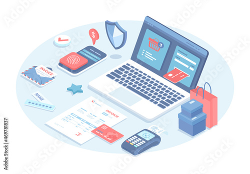 Different payment option and financial operation isolated set with human hands. Cash, contract loan pay, mobile banking, credit card, smartwatch vector illustration