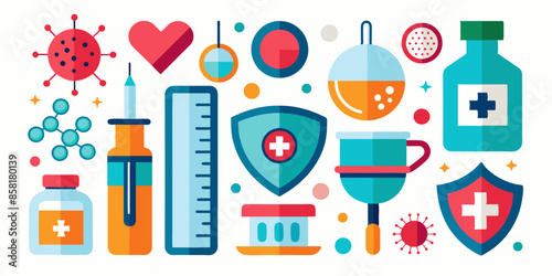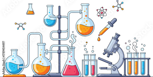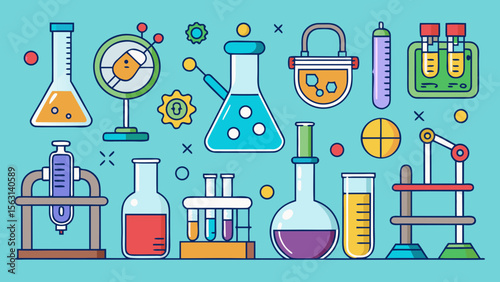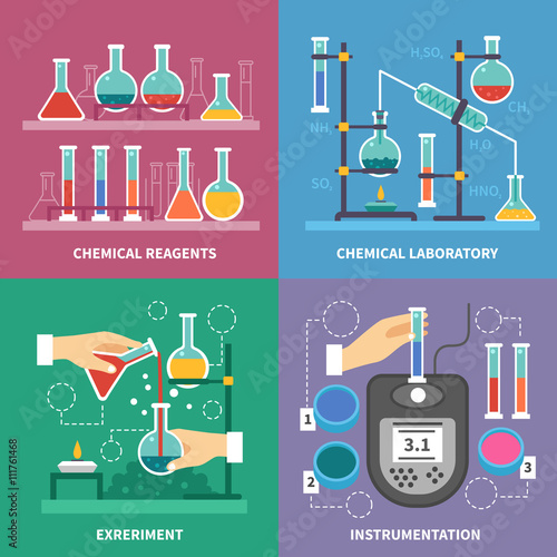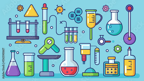 Set of laboratory flasks. Chemistry objects in flat design. Vector illustration.